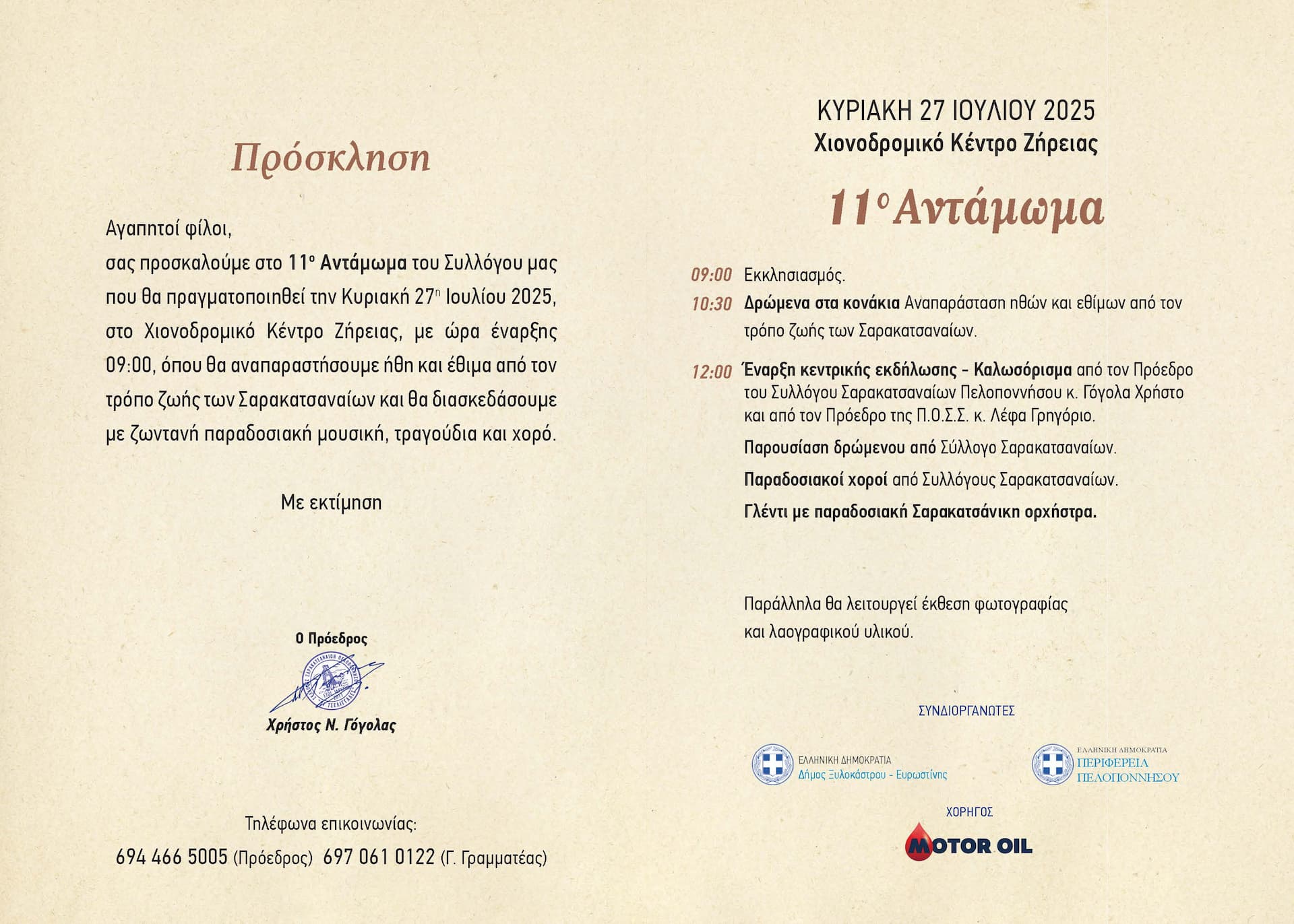 Την Κυριακή 27-07-2025 στο Χιονοδρομικό Κέντρο Ζήρειας και από τις 9 π.μ. λαμβάνει χώρα το
