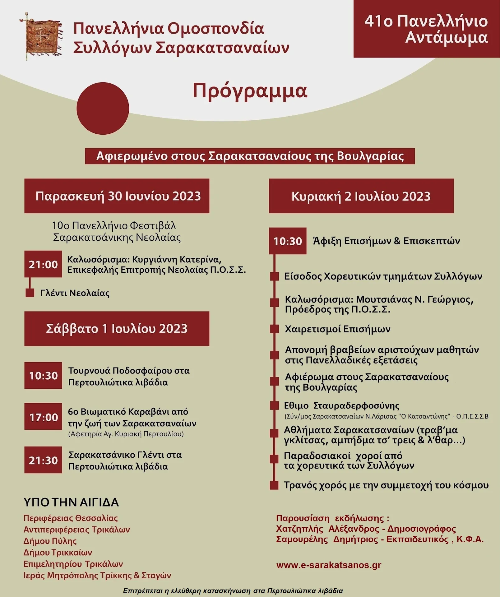 41ο Πανελλήνιο Αντάμωμα Συλλόγων Σαρακατσαναίων 30 Ιουνίου έως 2 Ιουλίου 2023