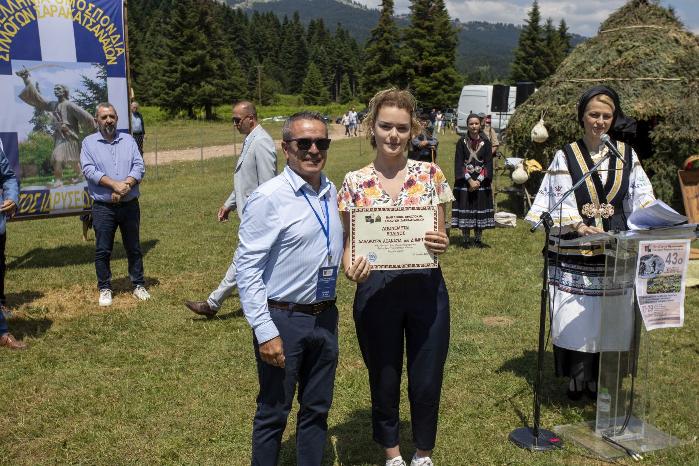 Τέλος χαιρέτησαν o πρόεδρος της Ομοσπονδίας των Σαρακατσαναίων της Βουλγαρίας κ. Αθανάσιος Γρούνας και η πρόεδρος του τοπικού συλλόγου Σαρακατσαναίων κ. Ελένη Κόκκαλη.
