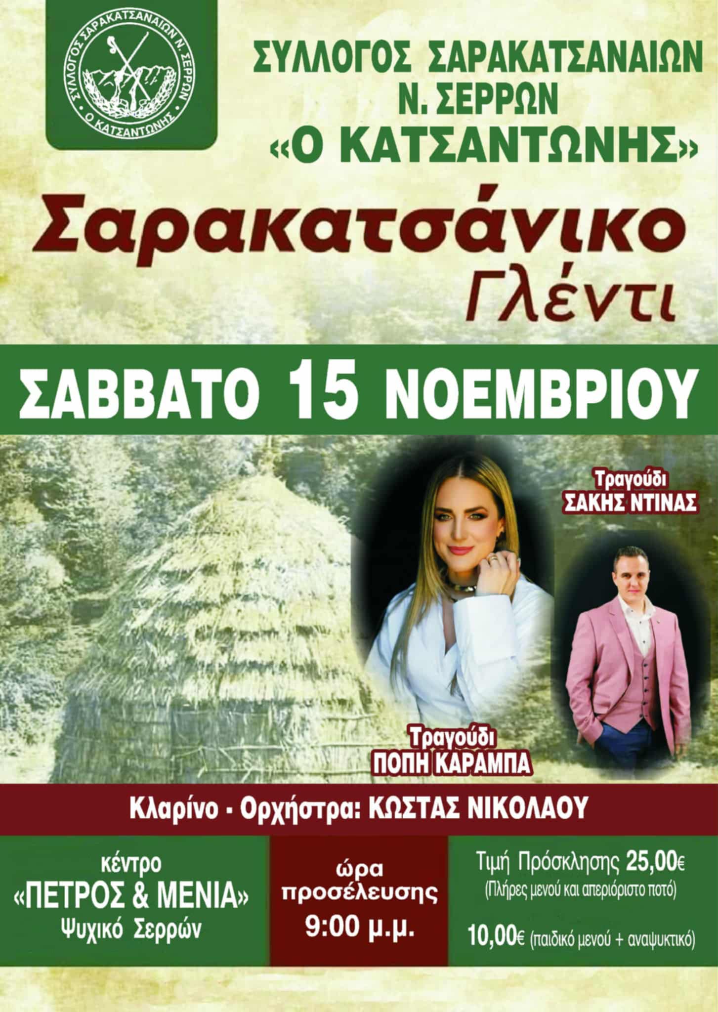 Ο Σύλλογος Σαρακατσαναίων Νομού Σερρών “Ο Κατσαντώνης” προσκαλεί τα μέλη και τους φίλους του στο Σαρακατσάνικο Γλέντι, που θα πραγματοποιηθεί το