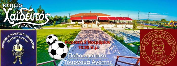 Tην Κυριακή 2 Νοεμβρίου στις 10:30 πμ στον πολυχώρο ”Κτήμα Χαϊδευτός” στο Καβαλάρι, ο σύλλογος Σαρακατσαναίων Επαρχίας Λαγκαδά ” Τα Σταυραδέρφια” με τον Σύλλογο Σαρακατσαναίων Φοιτητών Θεσσαλονίκης ”Ο Λεπενιώτης”, θα παίξουν ποδόσφαιρο για το χαμόγελο του παιδιού!