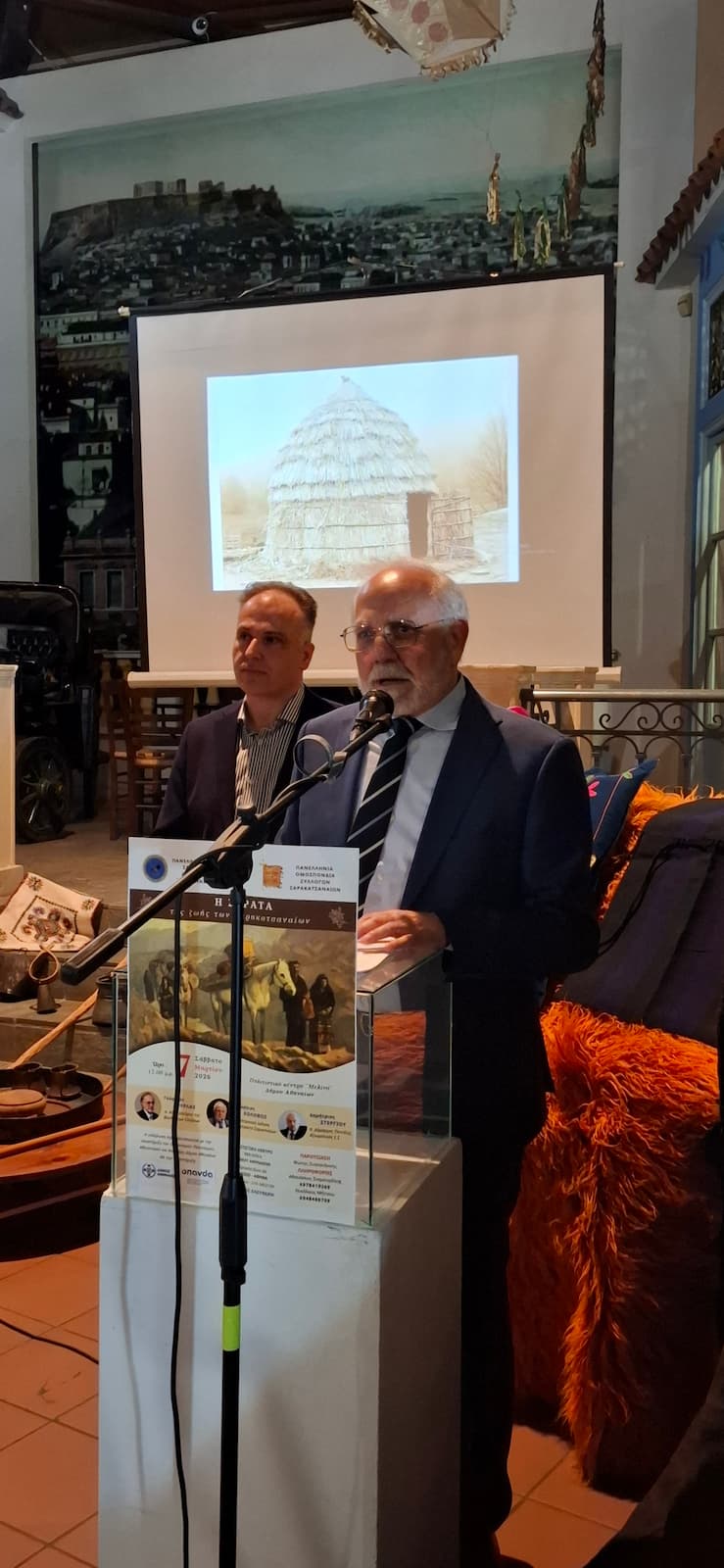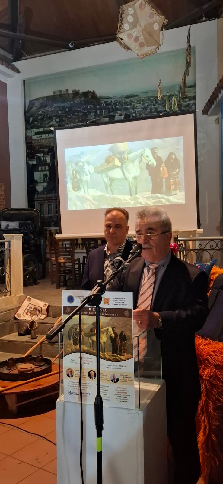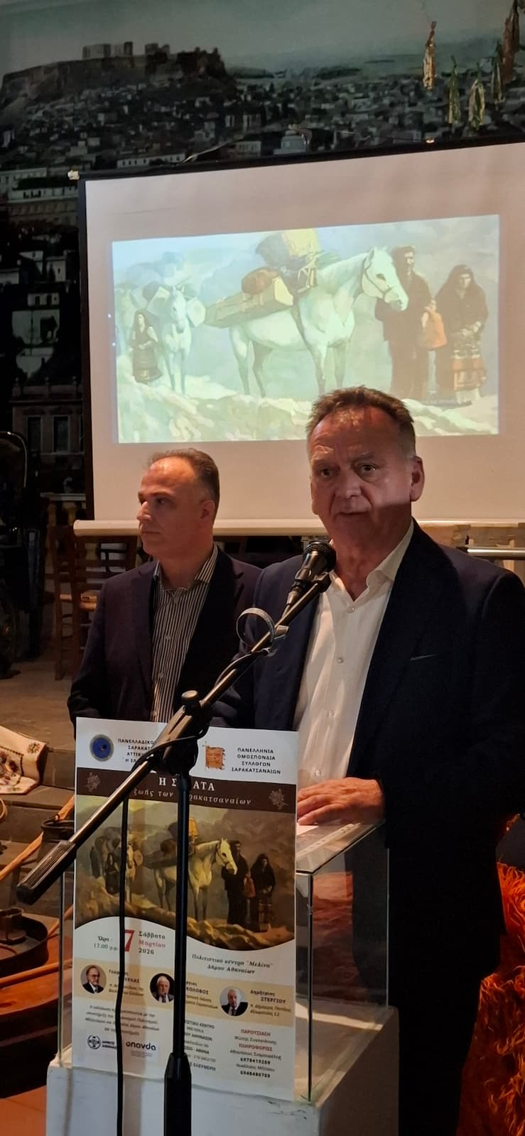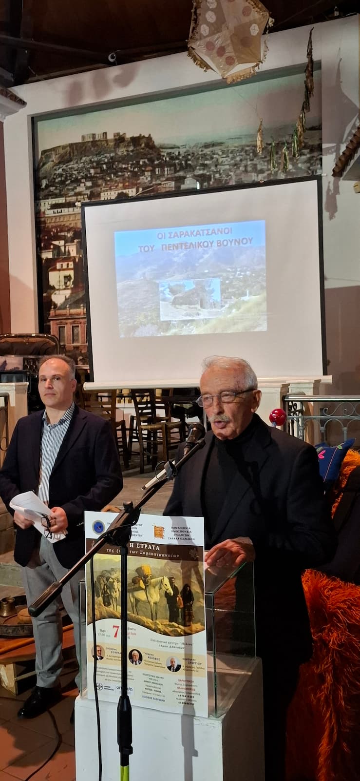 Οι ομιλητές της εκδήλωσης, Γεώργιος Σούρλας (π. Υπουργός, π. Αντιπρόεδρος της Βουλής των Ελλήνων), Γεώργιος Κολοβός (Ηλεκτρονική έκδοση «Πορτραίτα Σαρακατσαναίων») και Δημήτριος Στεργίου (π. Δήμαρχος Πεντέλης, Αξιωματικός ε.α), μάς κέντρισαν το ενδιαφέρον με τις εισηγήσεις τους, φωτίζοντας με ξεχωριστό τρόπο την ιστορία, την παράδοση και την καθημερινή ζωή των Σαρακατσαναίων τους οποίους και ευχαριστούμε.