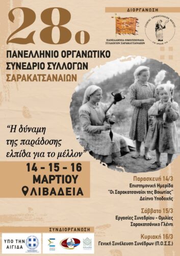 Ολοκληρώθηκε με απόλυτη επιτυχία το 28ο Οργανωτικό Συνέδριο των Συλλόγων Σαρακατσαναίων που πραγματοποιήθηκε το τριήμερο 14-15-16 Μαρτίου 2025 στη Λιβαδειά της Π.Ε. Βοιωτίας και διοργανώθηκε από τον Σύλλογο Σαρακατσαναίων Βοιωτίας
