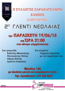 Παρασκευή, 19 Ιουνίου στις 9:00 μ.μ.στην τοποθεσία Νεράιδα – Αρχόντισσα Ξάνθη. Ένα γλέντι ακόμα για την νεολαία και όχι μονό. Τραγούδι: Κώστας Μπανιωτης Παναγιώτης Ούτος Σάκης Ντίνας Ιωάννα Τσαούση Τηλέφωνο για