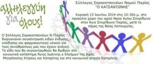 Ο Σύλλογος Σαρακατσαναίων Φοιτητών Αθήνας <<ο Κατσαντώνης>> σας προσκαλεί στο αποχαιρετιστήριο γλέντι που διοργανώνει το Σάββατο 14 Ιουνίου 2014 και ώρα 21:00 στο κυλικείο της Σχολής Αγρονόμων και Τοπογράφων Μηχανικών