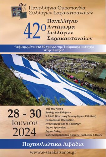 Με απόλυτη επιτυχία στέφθηκε το 42ο Πανελλήνιο Αντάμωμα Συλλόγων Σαρακατσαναίων, που έλαβε χώρα στα Περτουλιώτικα λιβάδια της Περιφερειακής Ενότητας Τρικάλων, σε ένα ειδυλλιακό τοπίο το τριήμερο από τις 28 έως τις 30 Ιουνίου 2024.