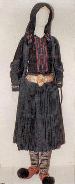 - Φούστα. Μακριά, από τη μέση μέχρι τις γάμπες. Είναι φτιαγμένη με την ίδια τεχνική που είναι της Θεσσαλίας και της Κεντρικής Μακεδονίας. Διαφέρει όμως στις πιέτες. Όλη η φούστα είναι φτιαγμένη σε πιέτες και έχει δύο ή τρία άσπρα σειρίτια στην ύφανση. Επίσης είναι κεντημένη στο κάτω μέρος της.