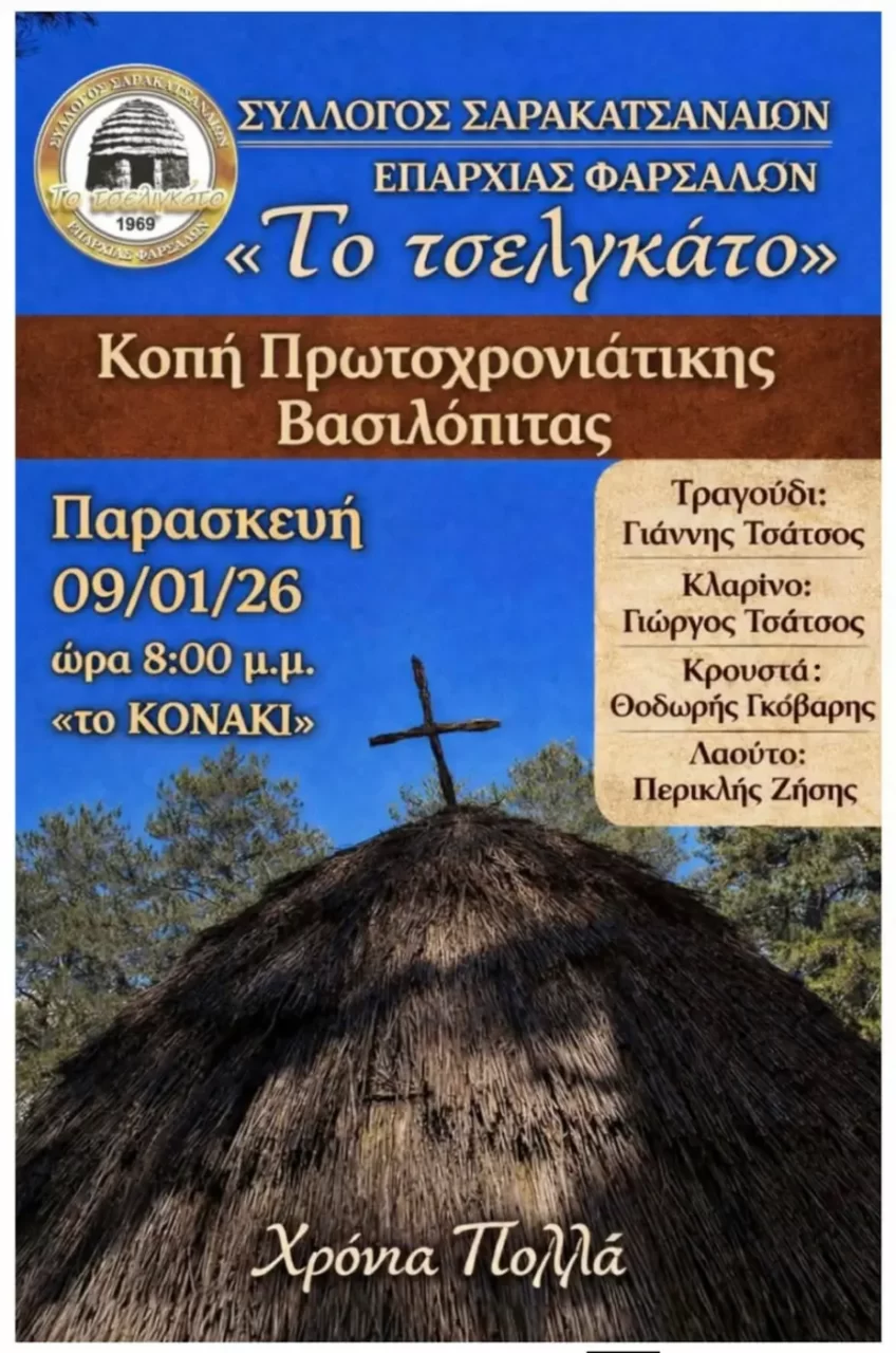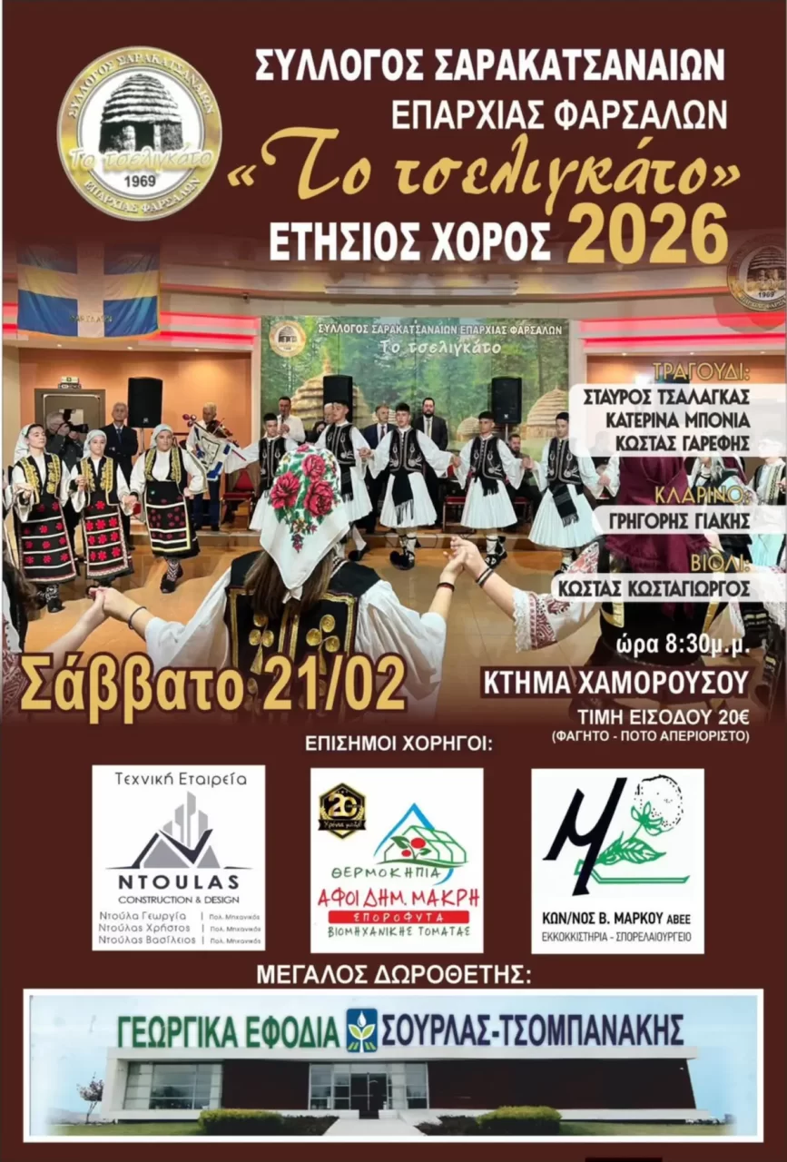 Ετήσιος Χορός Συλλόγου Σαρακατσαναίων Επαρχίας Φαρσάλων – Σάββατο 21 Φεβρουαρίου 2026
