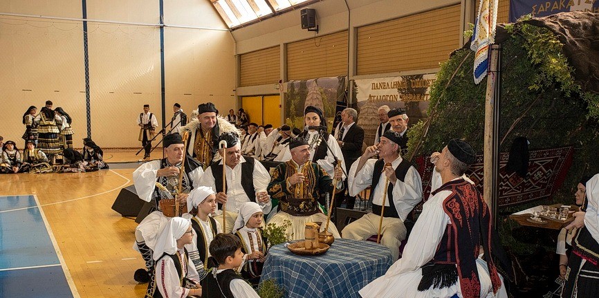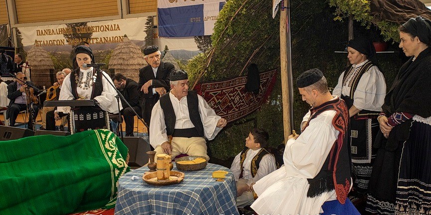 Ηλεκτρονικής Εφημερίδας της Π.Ο.Σ.Σ. Από την θεατρική ομάδα του Σ.  Σ. Βάλτου- Ξηρομέρου και Ευρυτανίας «οι Σταυραετοί των Αγράφων».  Στην συνέχεια ακολούθησε καλωσόρισμα με Σαρακατσάνικα   τραγούδια από την Χορωδία Γερόντων του Συλλόγου Σαρακατσαναίων Ν. Πιερίας «Ο Κατσαντώνης».